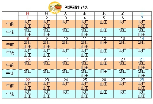 獣医師出勤表